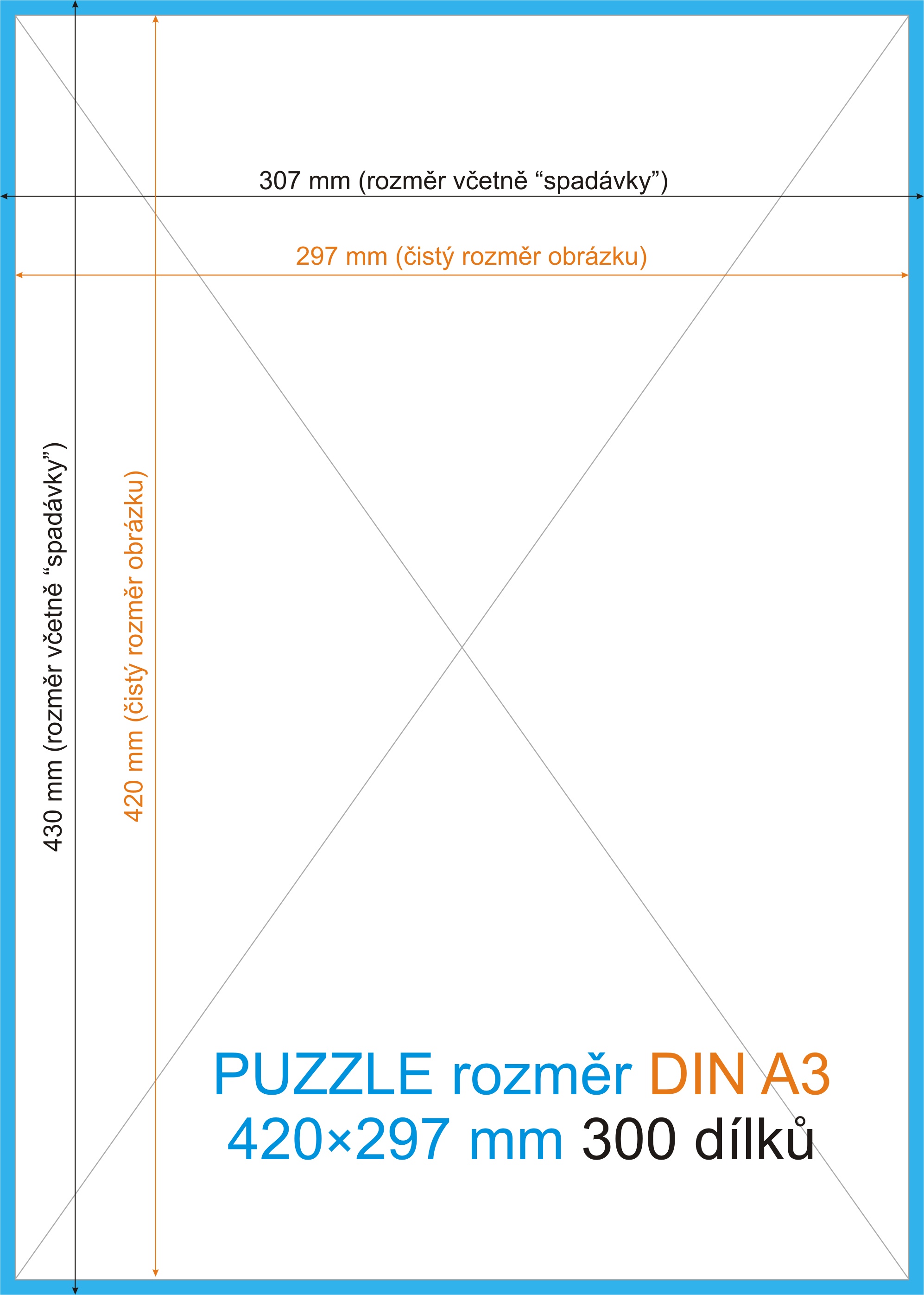 Poznámky k přípravě sazbyPracujeme na počítačích PC, vlastníme emulátor MACu, ale data se nám ne vždy podaří korektně načíst. Počítejte prosím proto vždy s přípravou dat tak, aby byla bezproblémově použitelná na PC. Formát vždy se spadávkou - připravené vzory pro jednotlivé formáty včetně krabiček si stáhnete v následující download sekci. Obrázkové bitmapy v TIFF, rozlišení 300 dpi, barevný prostor CMYK. Vektorová grafika v barevném prostoru CMYK. Při návrhu grafiky prosím pokud možno nepoužívejte linky a texty na okrajích čistého formátu puzzle, při ručním kašírovaní by nerovnoběžné a posunuté linky nemusely vypadat pěkně. Pro texty a loga a jiné grafické symboly pokud možno dodržujte vzdálenost alespoň 10 mm od čistého okraje puzzle. DownloadPřipravili jsme pro vás ke stažení makety pro sazbu, k dispozici jsou: puzzle A6 / 48 dílků: JPG (okótovaný výkres), CDR (CorelDraw!), PDF puzzle A5 / 45 dílků: JPG (okótovaný výkres), CDR (CorelDraw!), PDF puzzle A4 / 90 dílků: JPG (okótovaný výkres), CDR (CorelDraw!), PDF puzzle A3 / 300 dílků: JPG (okótovaný výkres), CDR (CorelDraw!), PDF krabička 275 × 192 × 43 mm: krabička 450 × 220 × 55 mm: